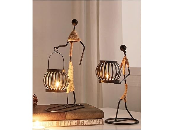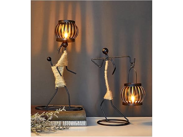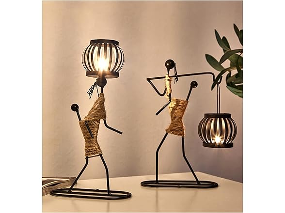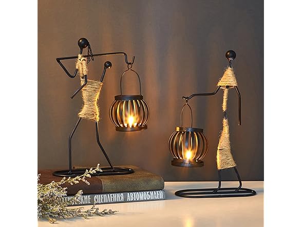 DFAGCOKN Wrought Iron Candle Holders Creative Home Decoration Candle Retro Candlelight Table Candlestick Holders Ornaments(L)