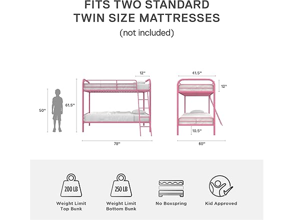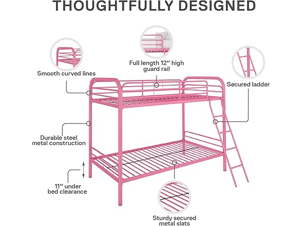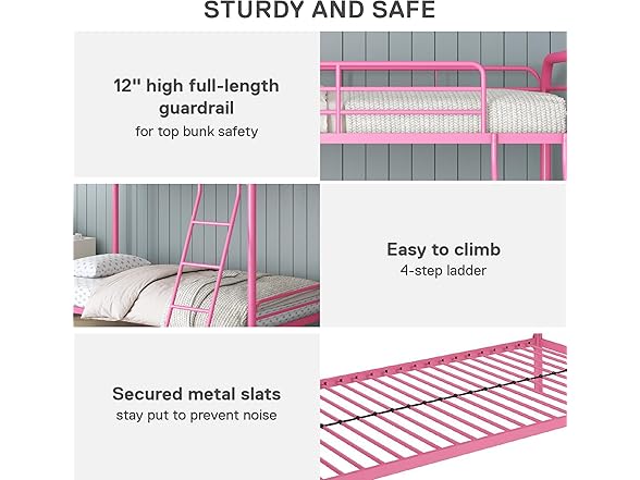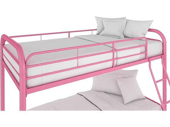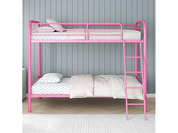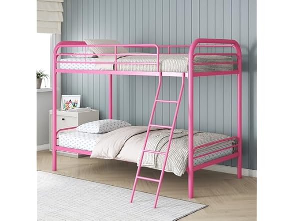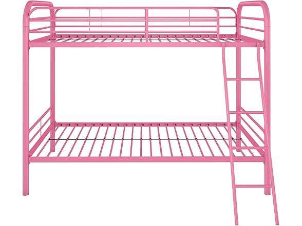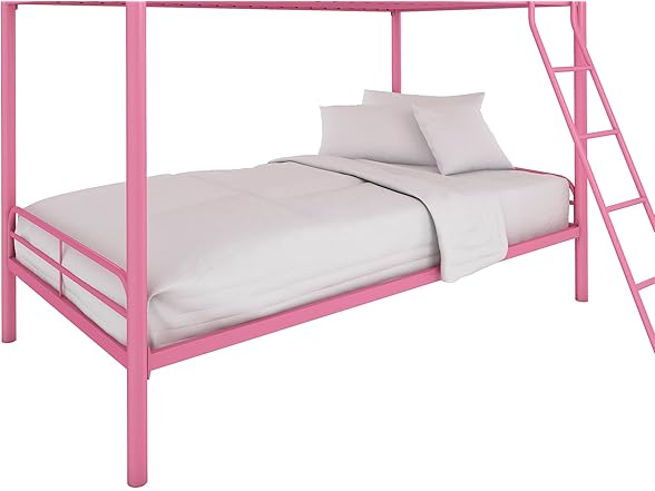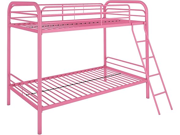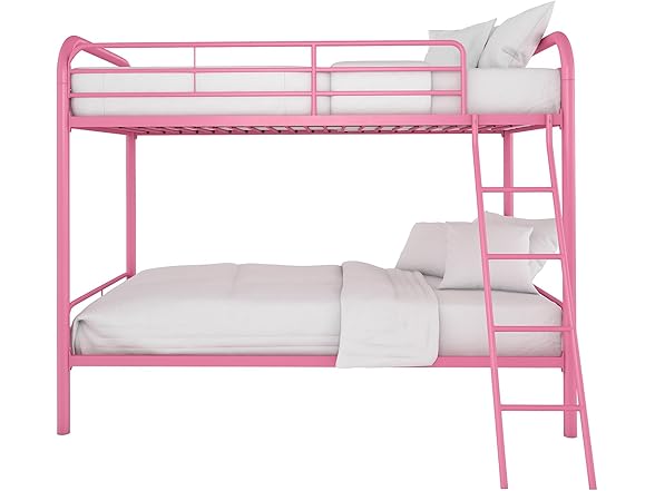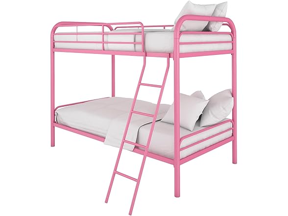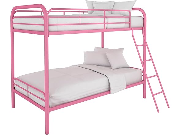 DHP Dusty Twin over Twin Metal Bunk Bed with Secured Ladder, Pink