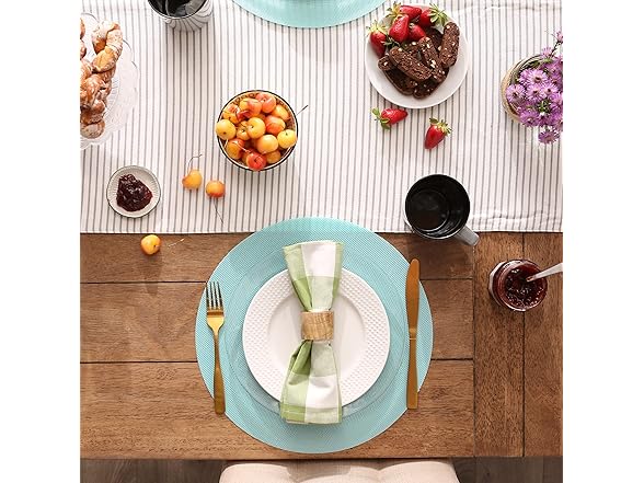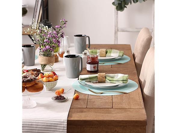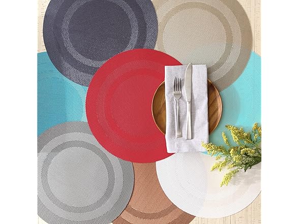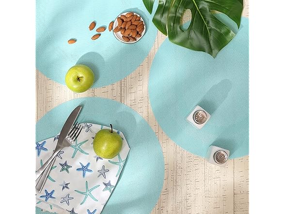 DII PVC Tabletop Collection Woven Indoor/Outdoor, Round Placemat Set, 13.75", Aqua, 6 Piece
