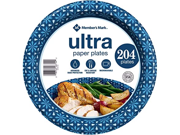 Member Mark Ultra Dinner Paper Plates (10", 204 ct.)