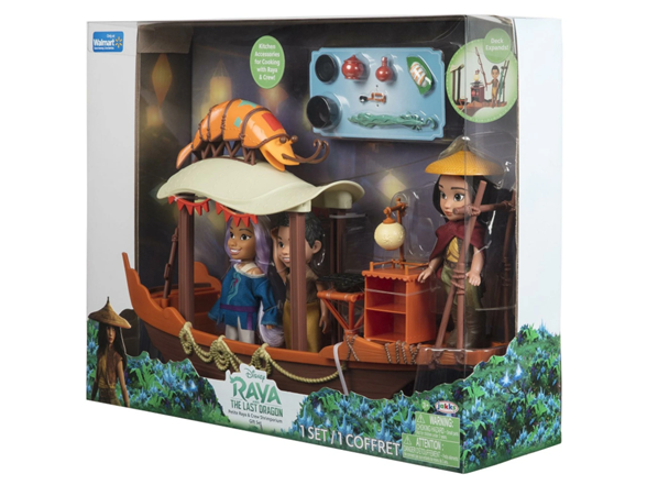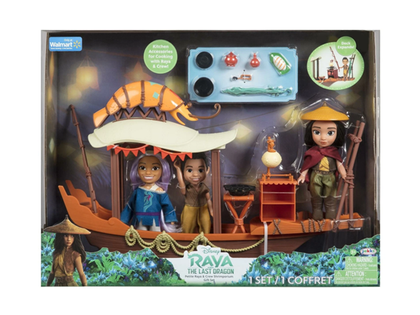 When the lands of Kumandra are threatened, Raya has to find the last dragon and together they must save the world. Set in the beautiful and unique fantasy land of Kumandra, Disney’s Raya and the Last Dragon is a story of adventure, unity and trust. All aboard the world famous Shrimporium!! Full-time restaurant and part-time getaway vehicle, now you can recreate all the adventures Raya and crew have aboard the Shrimporium with Disney’s Raya and the Last Dragon Petite Raya & Crew Shrimporium Gift Set. Measuring over 17 inches long and complete with an expandable deck, over 10 accessories, and the straight-from-film shrimp right on top of the boat, the Shrimporium provides the ultimate Disney’s Raya and the Last Dragon play experience. Raya, Human Sisu and Boun are all dressed in their signature outfits from the film, and include 5 points of articulation, to make posing and playing with them so much fun. The accessories, including a fishing rod, fish, play grill and table allow for lots of creative ways for Chef Boun to fish off the deck and cook, while Raya and Human Sisu enjoy his delicious cuisine. Full of play and story rich, recreate all your favorite Shrimporium moments from Disney’s Raya and the Last Dragon and build memories to last a lifetime with Disney’s Raya and the Last Dragon Petite Raya & Crew Shrimporium Gift Set.