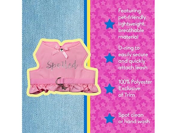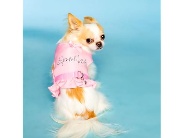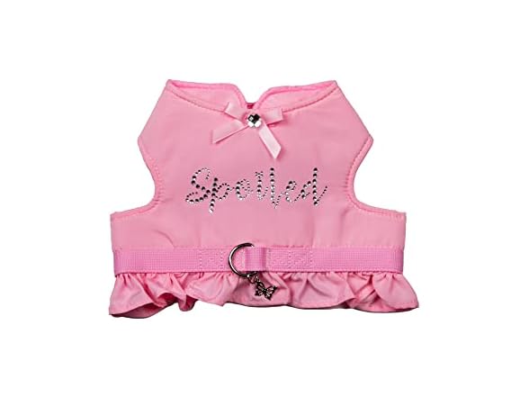 Dolly Doggy Parton Dog Harnesses and Leash/Collar Set Collection, Pink Spoiled Harness with Flounce, X-Small