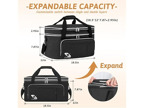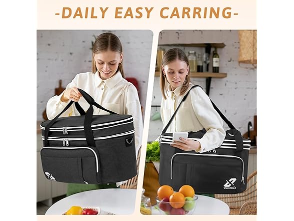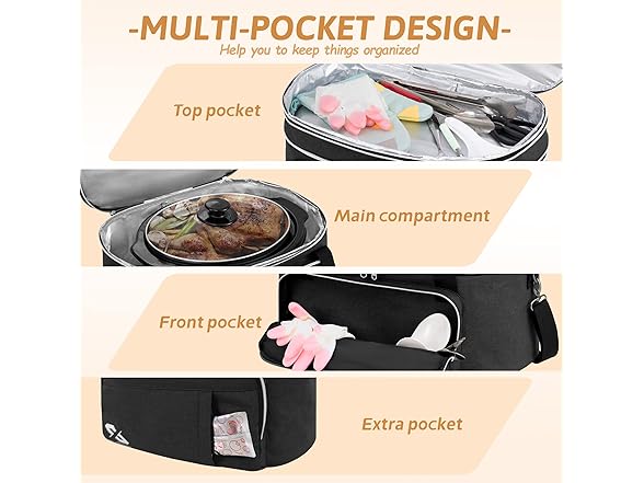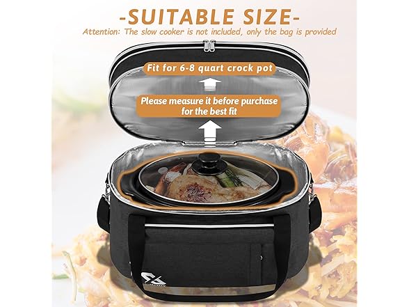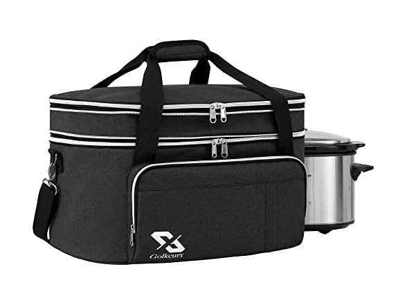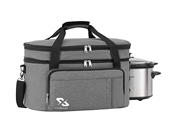 Golkcurx Double Layer Slow Cooker Bag for 6-8 Quart Oval CrockPot and Hamilton Beach Models, with Padded Adjustable Strap, Top Zip Compartment, and Front Pocket for Utensils(Bag Only)