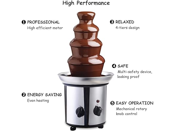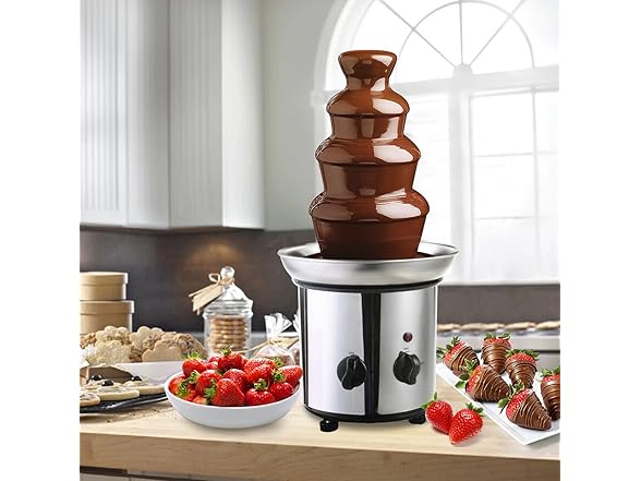 DPThouse 4-Tier Chocolate Fountain Cascading Fondue Stainless Steel, Silver