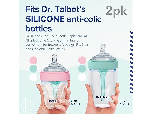 Dr. Talbot's Silicone Anti-Colic Bottle Replacement Nipples - Feeding Supplies for Newborn - (2-Pack) Extra Slow Flow Soft Flex Nipples - 0+ Months