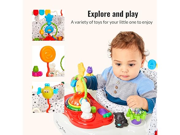 - Engaging 360° Fun – Rotating seat gives babies complete access to toys, lights, and sounds, encouraging exploration, motor skills, and endless entertainment.