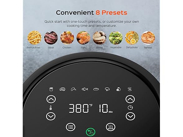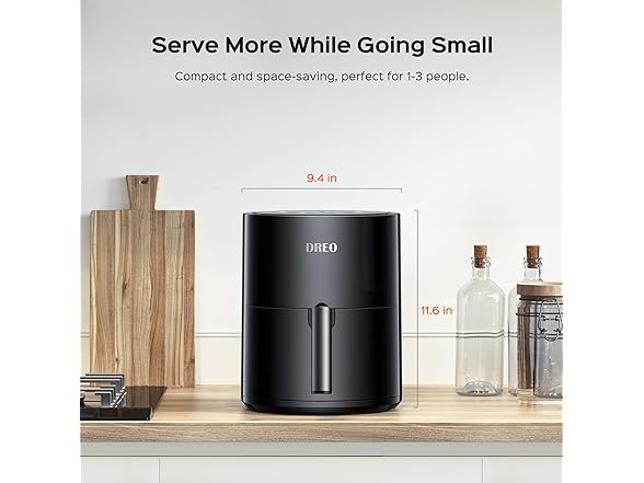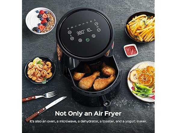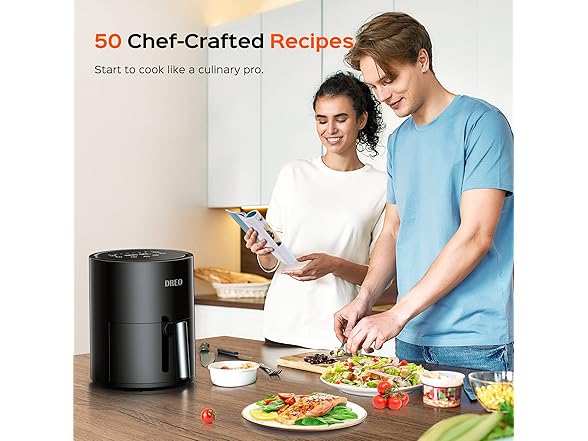 Dreo Air Fryer - 100℉ to 450℉, 4 Quart Hot Oven Cooker with 50 Recipes, 9 Cooking Functions on Easy Touch Screen, Preheat, Shake Reminder, 9-in-1 Digital Airfryer, Black, 4L (DR-KAF002)