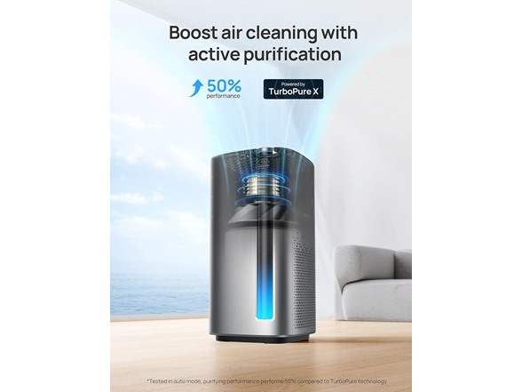 Optimized for larger rooms: TurboPure X brings up performance up to 50%. It can complete 4.8 times air exchanges per hour in a 423 sq ft room. For larger areas, it can purify rooms as big as 2030 sq ft in just one hour.