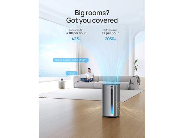 Works with Amazon Alexa and Google Home: Use your air purifier easily with voice or access more functions like air quality reports, unlimited speed settings and modes through the Dreo app.