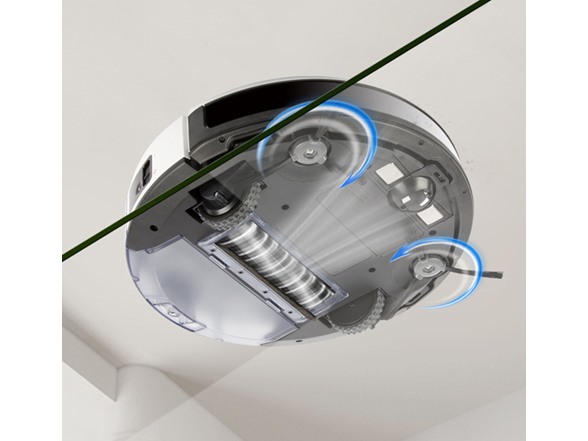 3-stage cleaning system for effortless cleanliness With the edge cleaning brushes and the V-shaped main brush, the DEEBOT simultaneously sweeps, lifts and vacuums in a single pass.