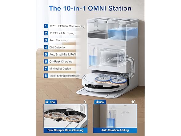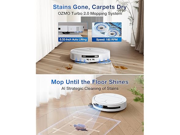 ECOVACS DEEBOT T50 PRO Omni Robot Vacuum and Mop, 3.19” Ultra-Slim, 15,000Pa Suction, ZeroTangle 2.0, TruEdge Edge Cleaning, AIVI 3D Obstacle Avoidance, Auto Mop Wash & Dry, Self-Emptying, White