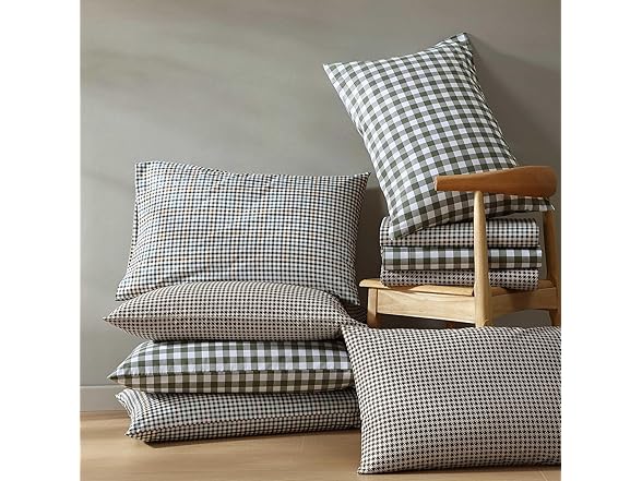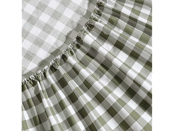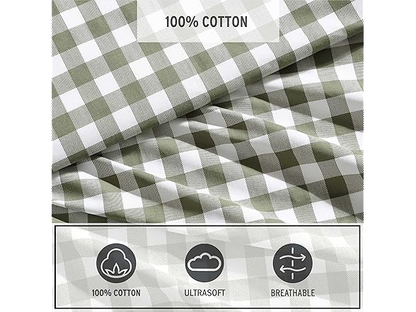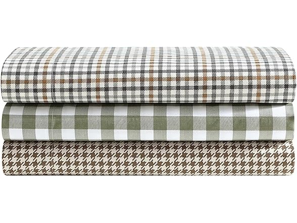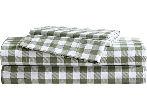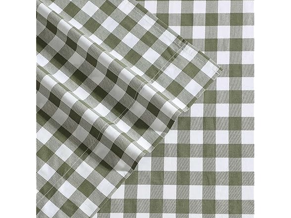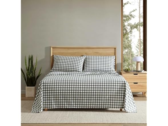 Eddie Bauer - Full Sheet Set, Crisp & Cooling Sheets w/a Naturally Smooth Cotton Percale Lightweight Feel - Matching Pillowcases & Deep Pocket Fitted Sheet (Preston Check Green)