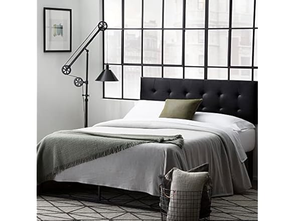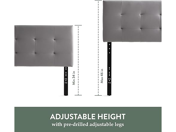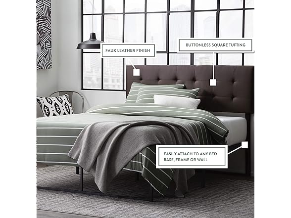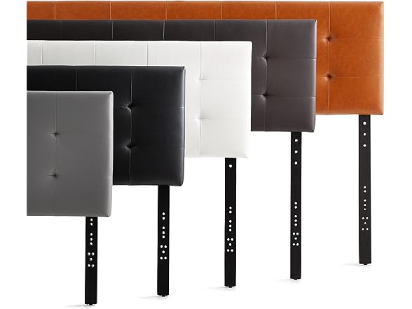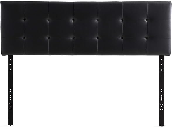 Edenbrook Hawthorne Faux Leather Headboard - Modern -Adjustable Height - Buttonless Tufting, Queen, Black