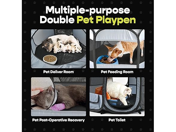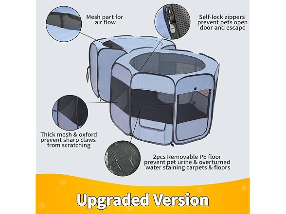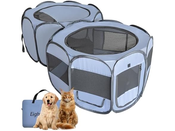 EighteenTek® XLarge 2-in-1 Pop up Dog Playpen, Assembly-Free, with Leakproof Pet Pee Pads,Portable Foldable Cat Tent Enclosure Indoor Outdoors Puppy Kittens Small Animals Crates (M, 72" Lx36 Wx24 H)