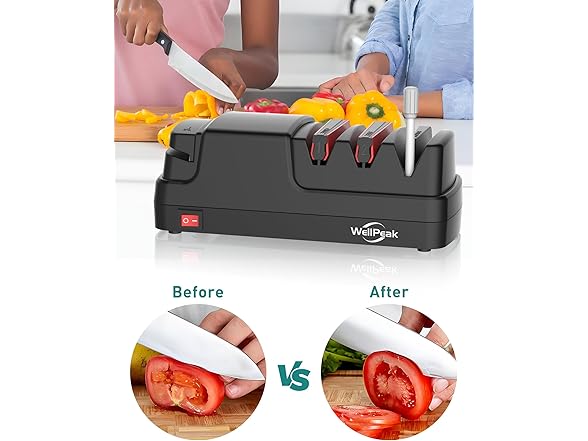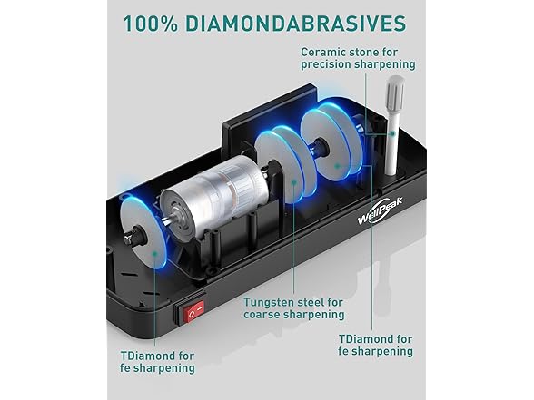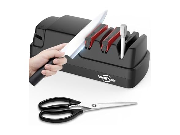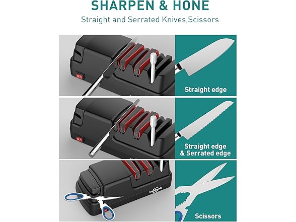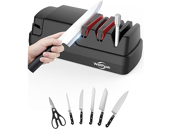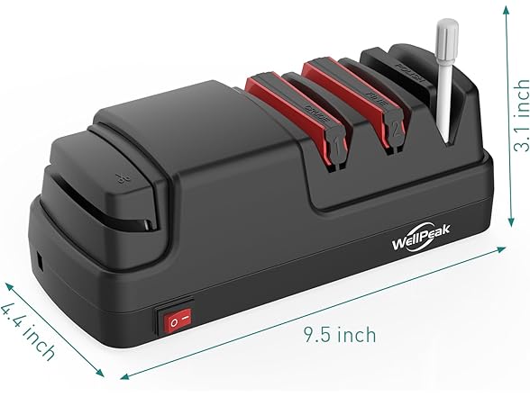 WELLPEAK 4-Stage Professional Electric Knife & Scissor Sharpener for Home Commercial Chef, Diamond Abrasive for Straight Edge Chef Knives, Detachable Ceramic Hone Rod for Serrated Knives Polishing