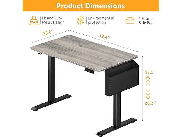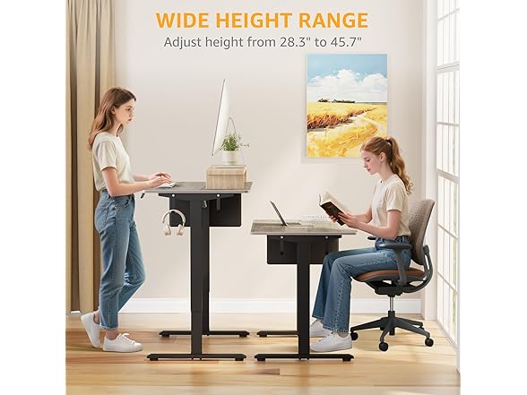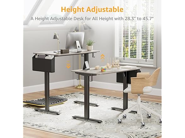 - Height Adjustable Desk : Electric Standing Desk Has Reliable Motor that Could Support Height Adjustment Between 28.3''-45.7''with Low Noise(Under 50 Db) While Running