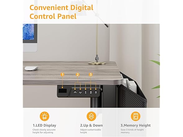 - Sit Stand Desk Electric : Ergonomic Design Adjustable Desk is Equipped with A High-Quality Motor And 3 Height Memory Buttons. This Ergonomic Electric Standing Desk Allows You to Free Your Hands And Easily Adjust The Desired Height, Relieving Pressure On Your Back And Neck