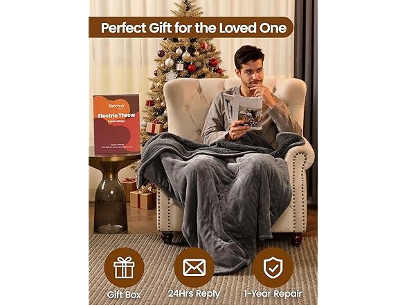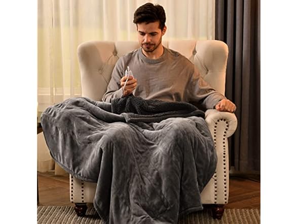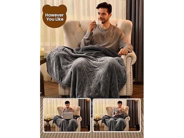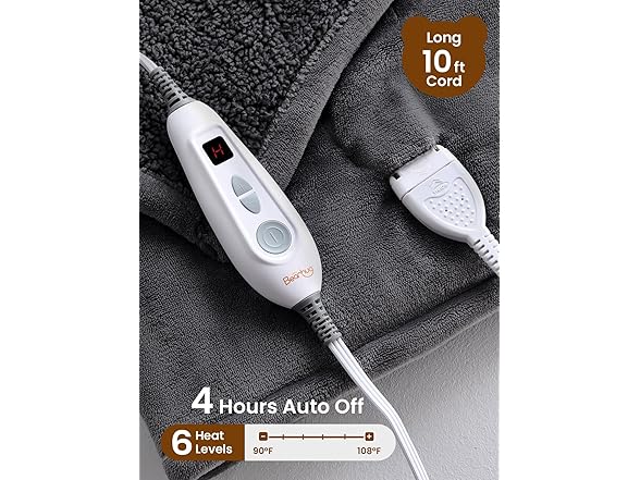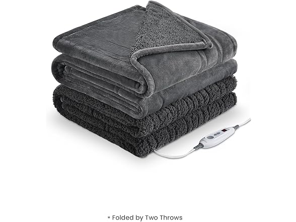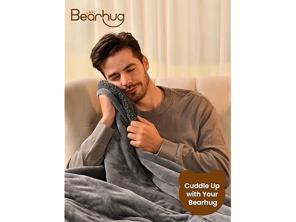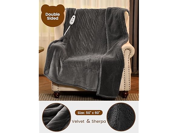 Bearhug Electric Throw Blanket 50" x 60", Reversible Velvet & Sherpa Heated Throw, 6 Heating Levels & 4H Auto Off, Over-Heat Protect, ETL Certification, Machine Washable