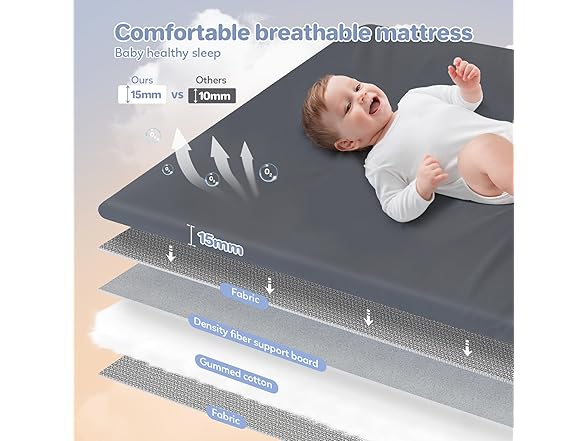- 【Comfortable Mattress with Bed Cover】The 3 layer sponge level thickened mattress is fitted with the attached bed cover to protect the baby comfortable sleep. The cover can be dismantled and washed to ensure that the baby's sleep and play clean and tidy
