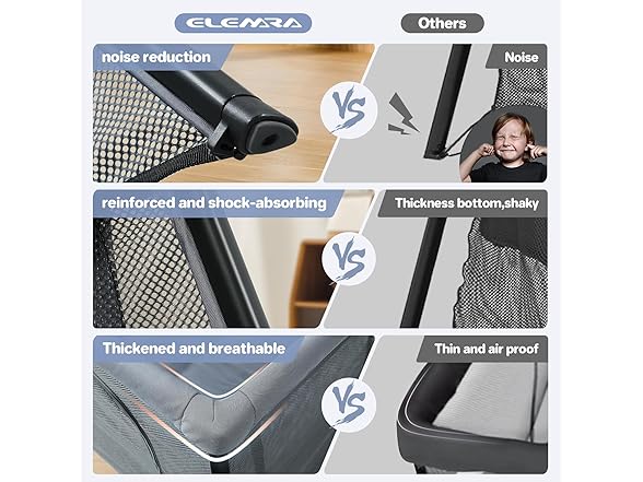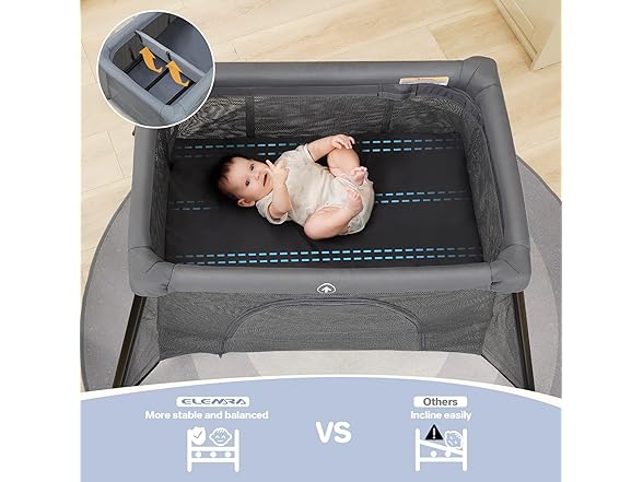 - 【Minimal Packaging & Portability】The ELEMARA travel portable crib is 46.46*39.37*26.38 inches, weighs 19 pounds,can hold a maximum of 33 pounds of baby, 9.05*6.89*29.92 inches of minimalist packaging, portability function make travel more convenient