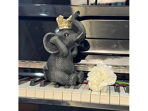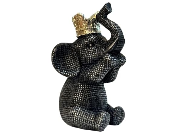 • HANDMADE ELEPHANT STATUES: made of high quality resin, waterproof and durable. Each elephant statue is handmade and hand-painted to give the elephant statue an exquisite finish and realistic skin detail. The white and black elephant body is painted in champagne gold color with persui to detail, showing the intricate design and craftsmanship that makes each piece unique.