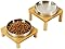 Raised Bamboo Cat Bowl Stand with 5.5 Inch Wide Stainless Steel Dishes