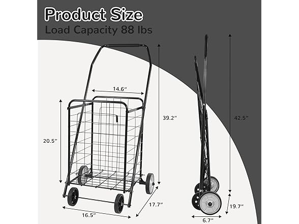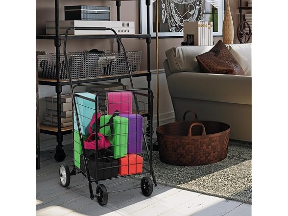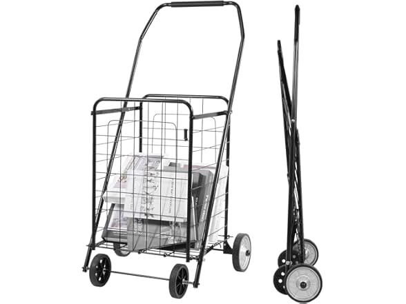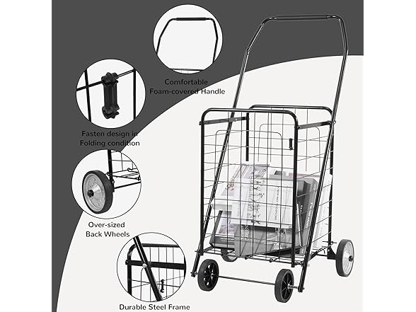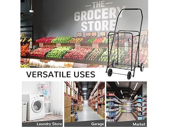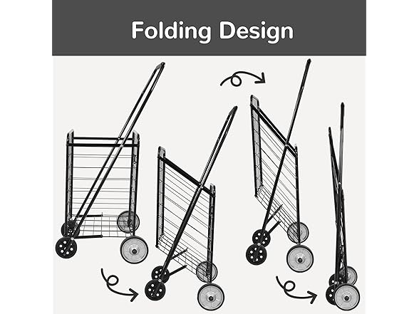 Elevon Foldable Shopping Utility Cart, Collapsible Durable Grocery Utility Cart with Rolling Wheels for Easy Storage, Laundry, Book, Luggage Travel, Compact Portable, Black