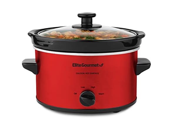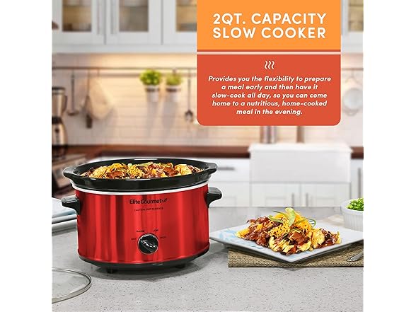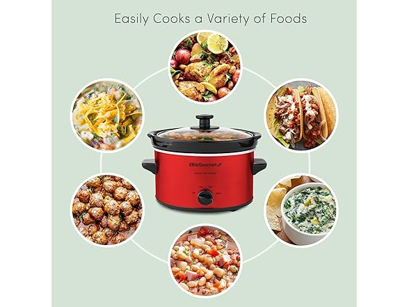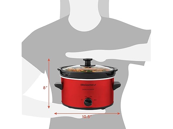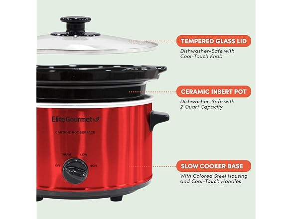 Elite Gourmet MST-275XR# Electric Oval Slow Cooker, Adjustable Temp, Entrees, Sauces, Stews & Dips, Dishwasher Safe Glass Lid & Crock (2 Quart, Metallic Red)