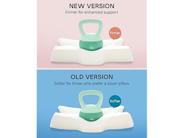 - UPGRADED: MEDIUM FIRMNESS, ENHANCED SUPPORT: This is the new version of our ergonomic pillow, designed as one of the most effective neck pain pillows for sleeping. After upgrading the firmness, it now features a balanced, medium feel that meets the needs of most users. If you prefer a firmer side sleeping pillow, choose the Memory Foam option. If you favor a softer pillow, opt for the Polyurethane Foam version. The cervical pillow curve design keeps your body in line, providing exceptional support to alleviate neck pain and enhance sleep quality.