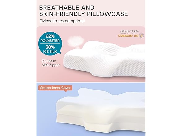 - BREATHABLE AND REMOVABLE PILLOWCASE: The Elviros neck pillow is designed with ice-silk fabric, enhancing breathability for a cooler and more refreshing sleep. Oeko-Tex certified for safety and quality, the pillowcase offers a skin-friendly, machine washable experience, ensuring comfort throughout the night.
