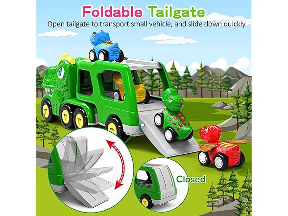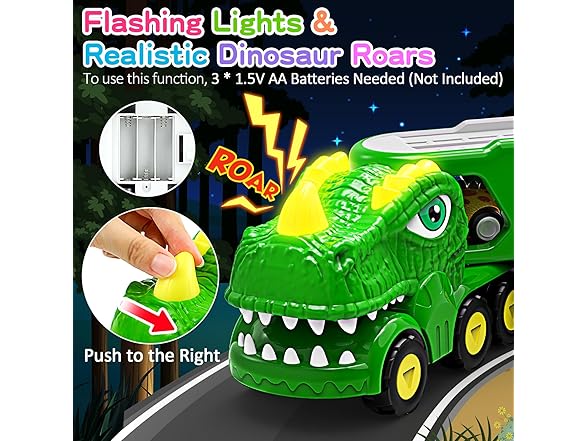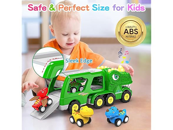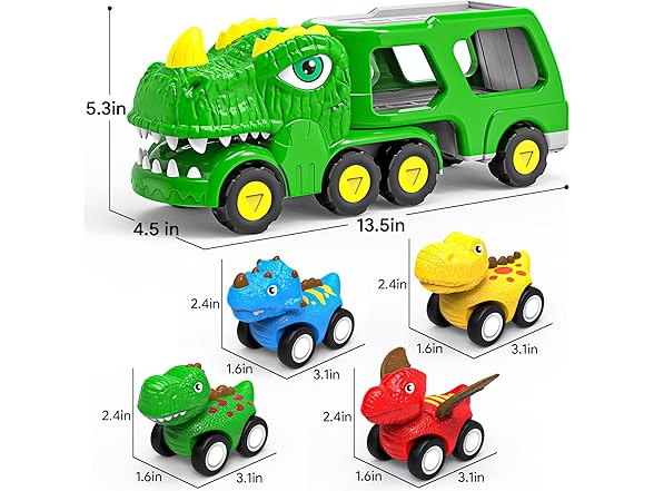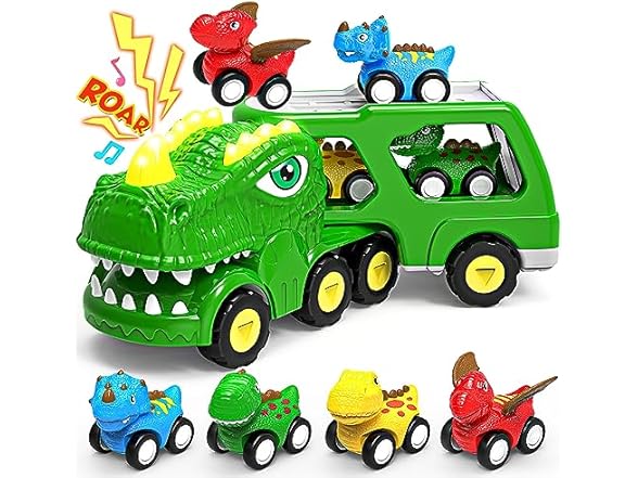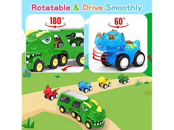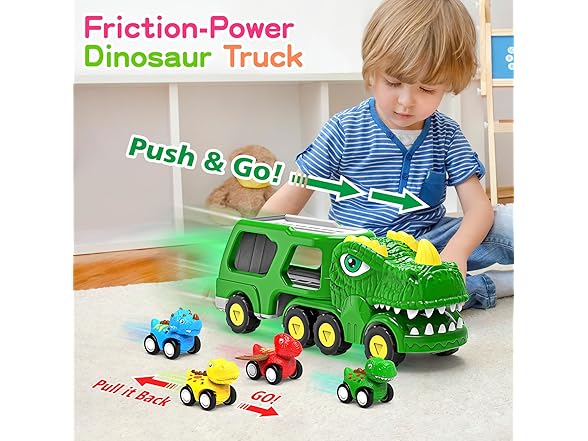 ENJSD Toys for 1 2 3 4 Year Old Boys, 5 in 1 Toys for Ages 2-4 with 4 Dinosaur Toys for Kids 3-5, Friction Powered Kids Boy Toddler Toys 1 2 3 4 5 Year Old boy Gifts with Flashing Light & Sound