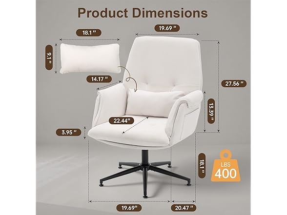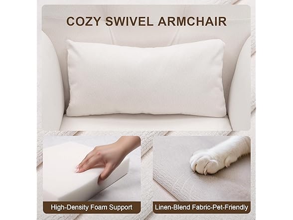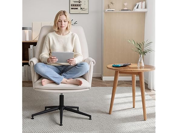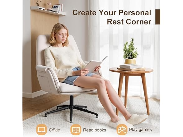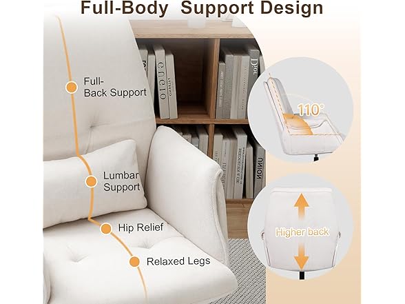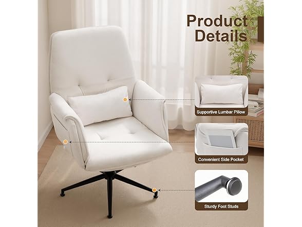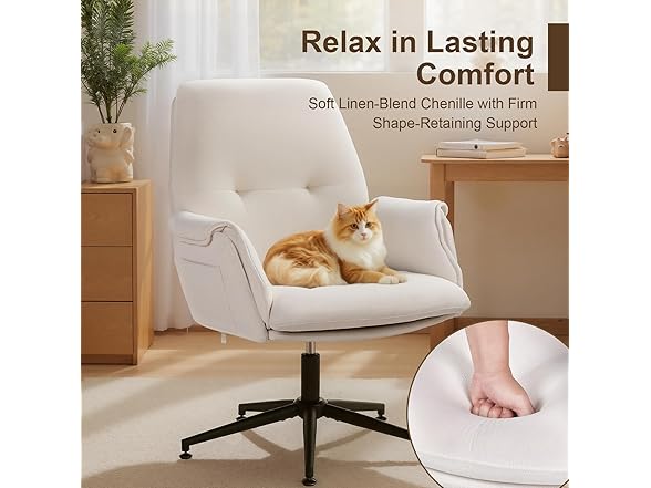 - [Breathable Linen-Blend Chenille Fabric] : Upholstered in soft linen-blend chenille with high-density rebound foam, this upholstered office chair stays breathable, durable, and supportive even during long sitting hours for work, gaming, or leisure.