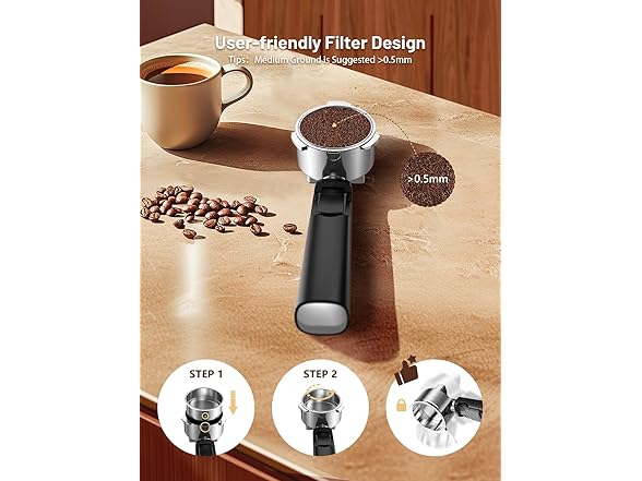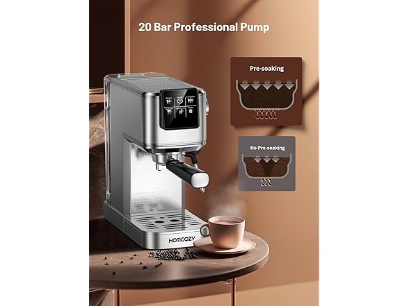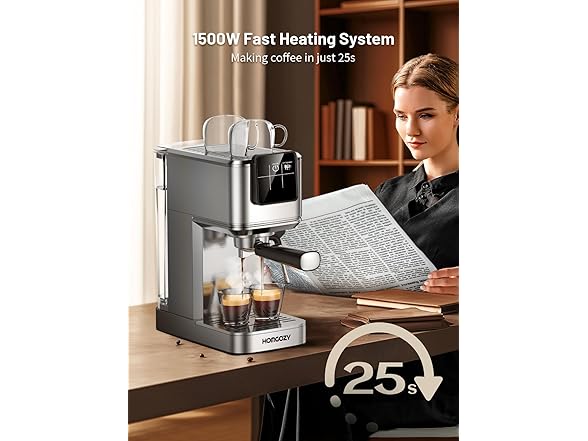 - 20-Bar Pressure & Pre-Infusion Technology: Experience barista-quality coffee with a powerful 20-bar pressure system and 1500W motor. The pre-infusion feature evenly soaks coffee grounds for precise extraction, delivering rich aroma, full-bodied flavor, and a velvety crema that rivals your favorite café.