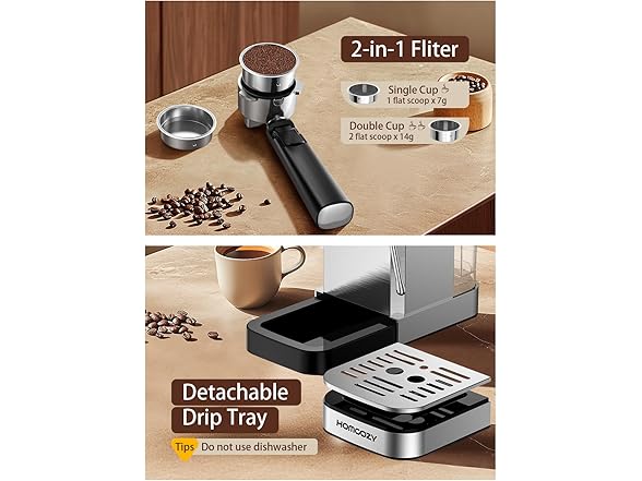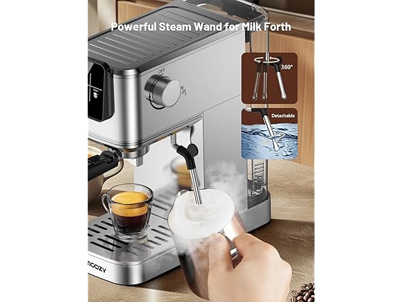 - Compact Design & Easy Maintenance: Designed for convenience, this sleek stainless steel coffee machine fits seamlessly into any kitchen or office space. The 37oz detachable water tank and removable drip tray make cleaning effortless, ensuring a hassle-free coffee-making experience every time. Warm tips: The coffee maker needs to be emptied of air from the pipes before each use.