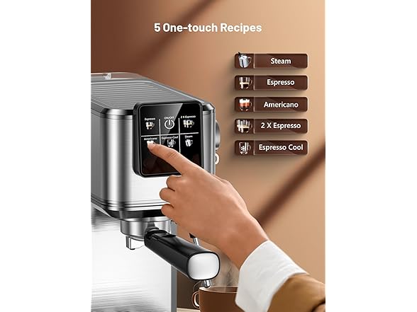 - Intuitive Touch Screen Control: Brew your favorite coffee with ease using the user-friendly touchscreen interface. Choose from espresso, Americano, or cold brew with just one touch. The fast-heating system ensures your coffee is ready in minutes, ideal for busy mornings or quick breaks.
