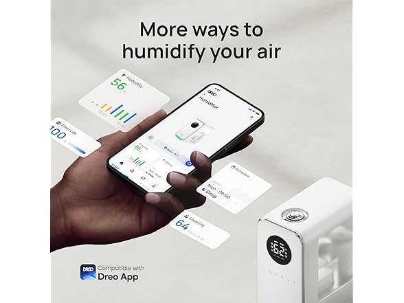 - 𝐇𝐞𝐚𝐥𝐭𝐡𝐲 𝐇𝐮𝐦𝐢𝐝𝐢𝐟𝐢𝐜𝐚𝐭𝐢𝐨𝐧: DREO humidifiers feature a versatile tank design, perfect for using cartridges to boost performance or running seamlessly without them. Ready to take it to the next level? Search 'DREO Demineralization Cartridge' to buy new cartridges.