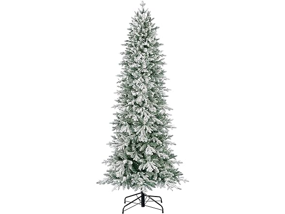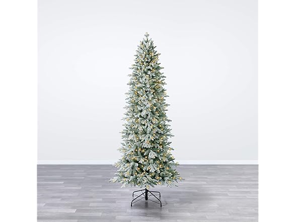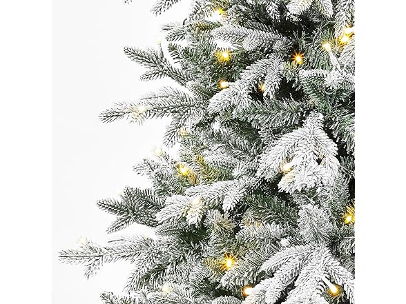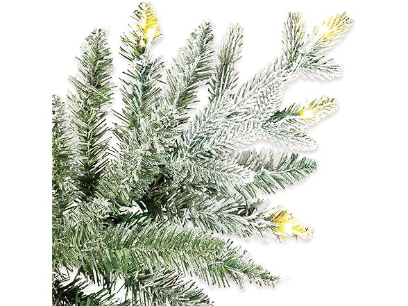 Evergreen Classics 7 ft Pre-Lit Snowy Redwood Pine Artificial Christmas Tree, Remote-Controlled Dimmable LED Lights