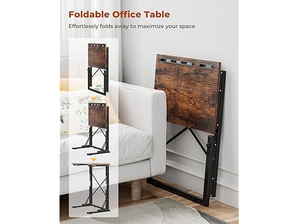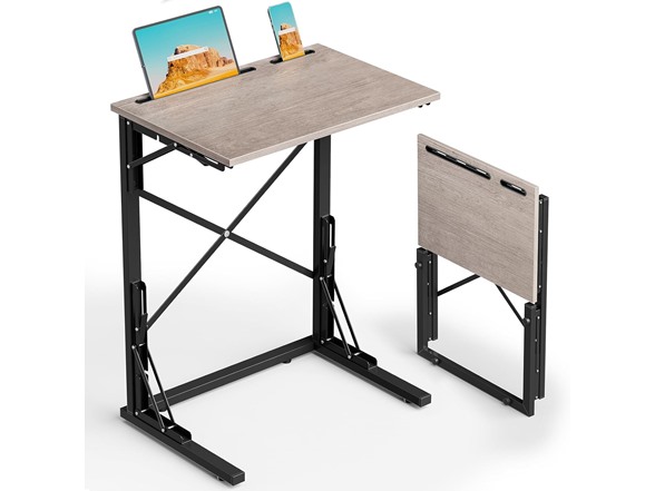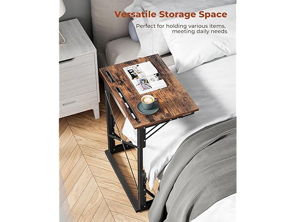 - C-Shaped & Versatile: This small foldable side table slides under the couch, perfect for any space; foldable for easy storage and mobility; ideal for studying, working, or eating; built-in slots for tablets and phones; a foldable snack tray table