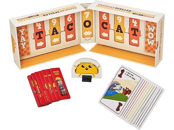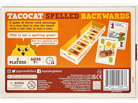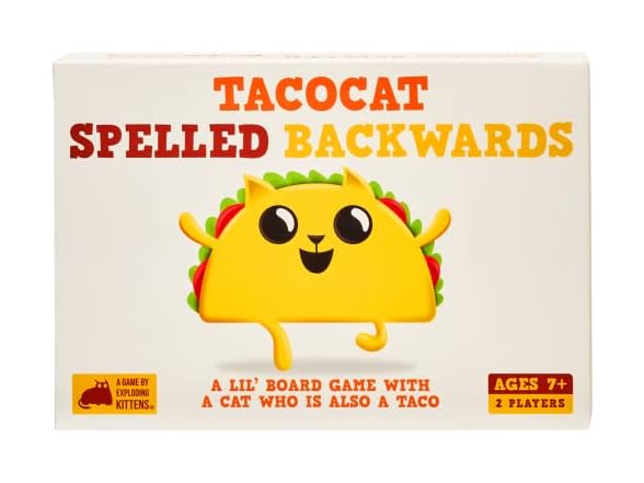 Exploding Kittens Tacocat Spelled Backwards 2 Players - Ages 7+ - 15 Minutes to Play - Clever Family Board Game - Couples Game, Family Game Night, Kid and Adult Board Game