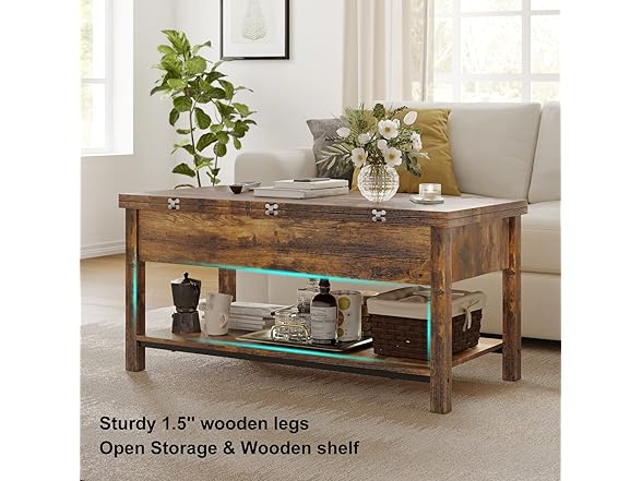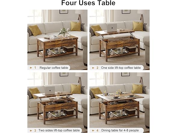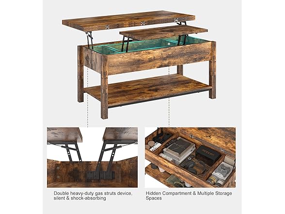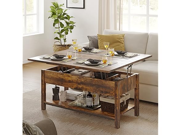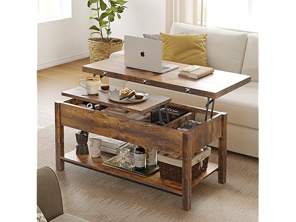 FABATO Lift Top Convertible Table, 4-in-1 Multi-Function Coffee/Dining Table with Storage, Rustic Brown, 41.73*19.29*18.3