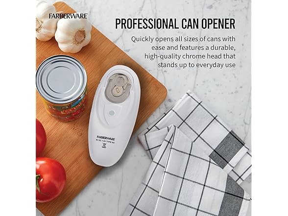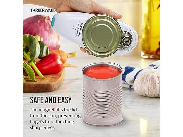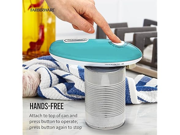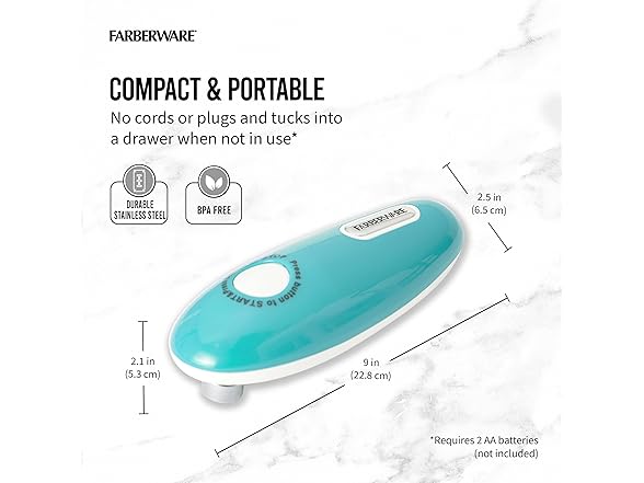 Farberware Compact Battery Operated Hands-Free Automatic Can Opener for any Size Can with Magnet to Safely Remove Lid, Seamless Opening Decreases Sharp Edges for Easily and Safely Opening Cans, Aqua