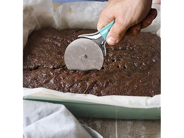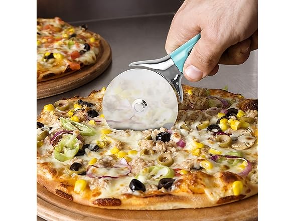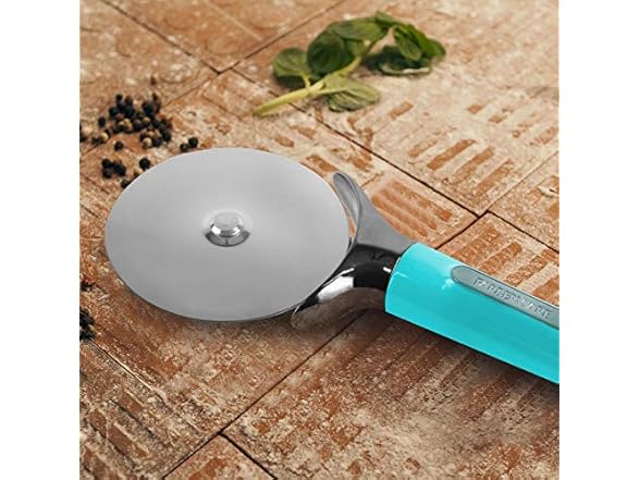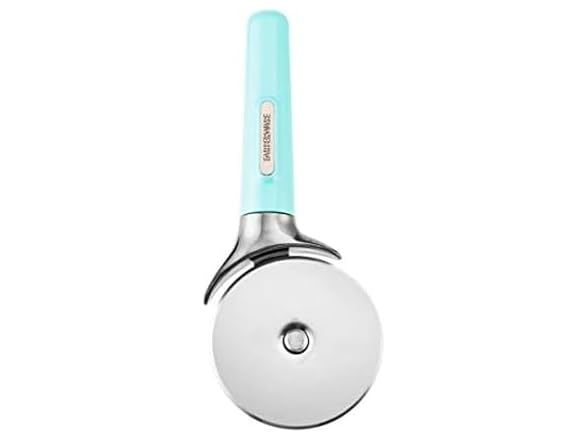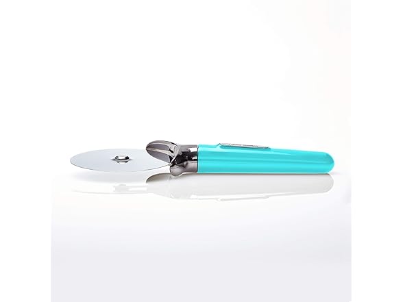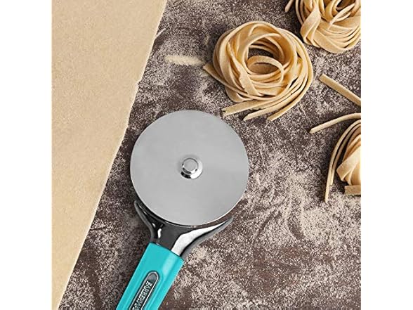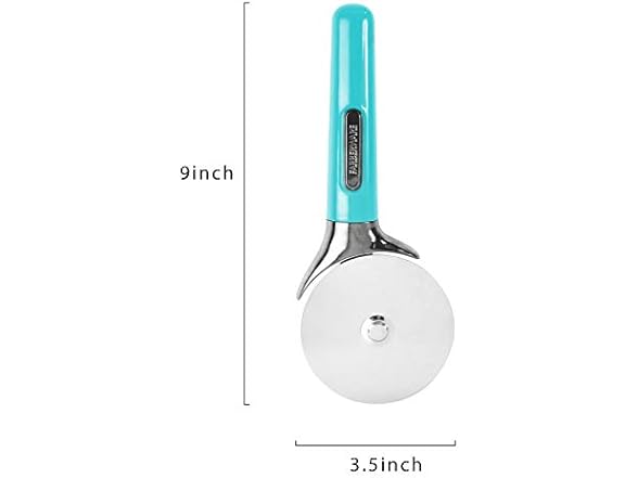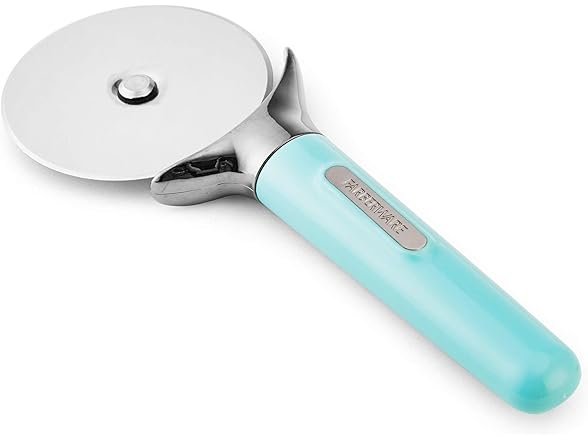 Farberware Pro Stainless Steel Pizza Cutter with Thick Blade to Cut Through Crust, Quesadillas, Brownies, ect, Elevated Wheel to Prevent Countertop Mess,Dishwasher Safe, Aqua, 9.37-Inch