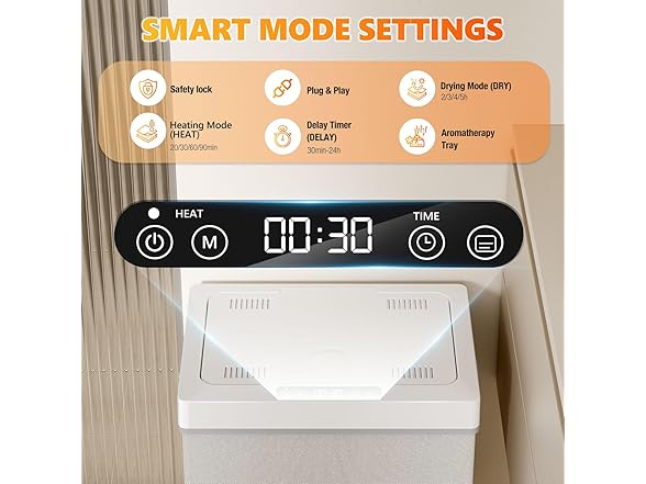 - 【Heating & Drying Modes】 The towel warmers for bathroom offer two convenient modes for everyday use. HEAT mode provides 20, 30, 60, or 90 minutes for quick warming, while DRY mode runs 2–5 hours to keep towels fresh, dry, and ready for use. Simple button controls with indicator lights make operation effortless. Compact, stylish, and efficient, it brings spa-like warmth and comfort to your bathroom routine