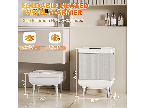 - 【Foldable Towel Warmer】Designed with a foldable structure, allowing you to collapse it when not in use easily, this towel warmer saves valuable space without compromising performance. It delivers warm, cozy towels while fitting perfectly in small rooms, dorms, or apartments. Easy to store, carry, and set up anywhere, it seamlessly blends comfort and convenience, providing a practical solution for your everyday bathroom routine