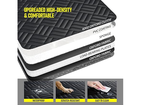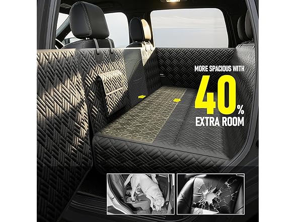 - [Waterproof & Scratch-Resistant & Non-Slip] Upgraded FIRSTWELL dog seat cover for the back seat features a hard bottom combined with premium 600D polyester Oxford fabric and 100% waterproof coating for ultimate durability and protection. The extended design provides 40% more space for your dogs to stretch out freely. With anti-slip rubber points on the bottom, the cover stays firmly in place even during sudden stops or drives, preventing your dog from slipping or falling. It also protects your car interior from scratches, fur, spills, and stains.