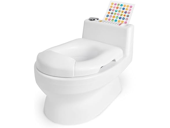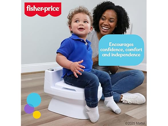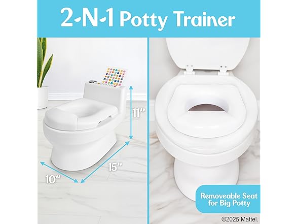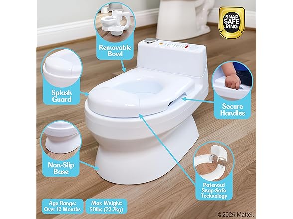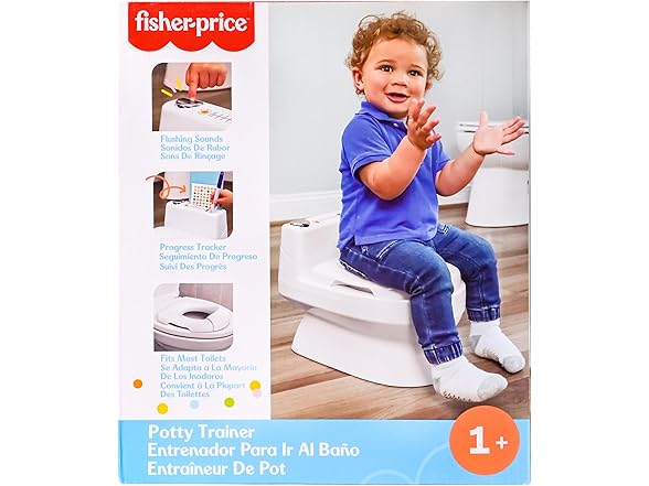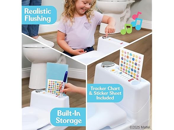 Fisher-Price™ 2-N-1 Potty Trainer with Flushing Sounds, Chart & Storage – White Floor Potty Chair with Splash Guard, Removable Ring & Bowl, Patented Snap Safe Ring Technology