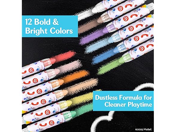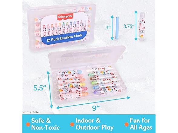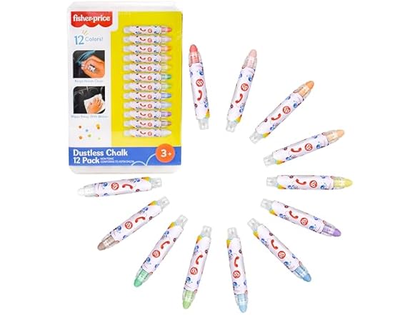 Fisher-Price™ Dustless Chalk Set - 12 Bright Colors with Adjustable Holders, Portable Storage Case, Washable Art Supplies, Safe & Non-Toxic, Draw on Chalkboards, Sidewalks, and Paper