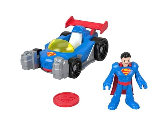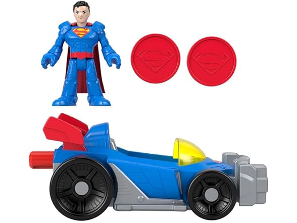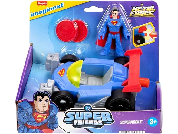 Fisher-Price Imaginext DC Super Friends Metal Force Supermobile Toy Car, 3-inch Superman Action Figure & Accessories Set, Includes Launcher & 2 Discs