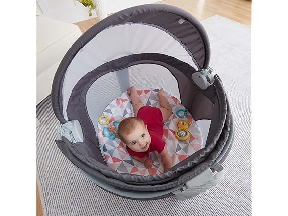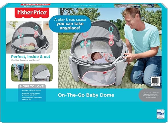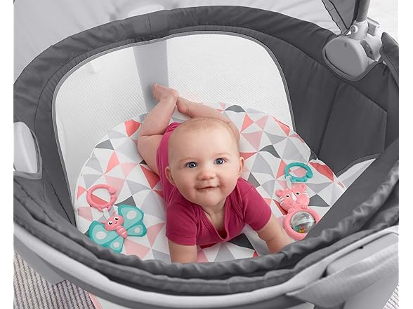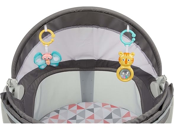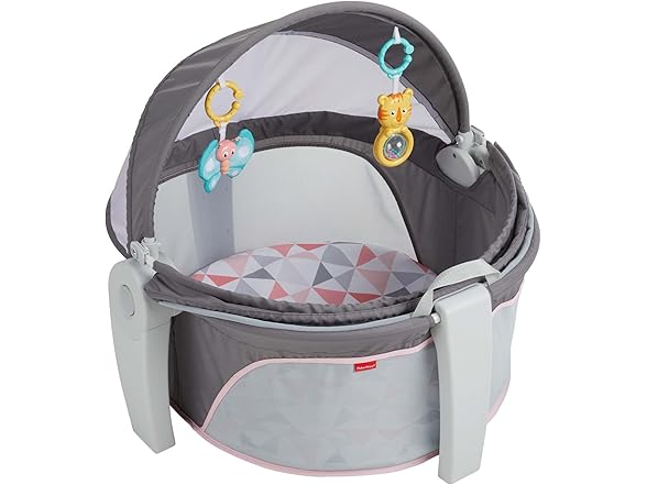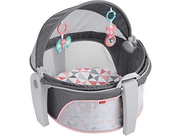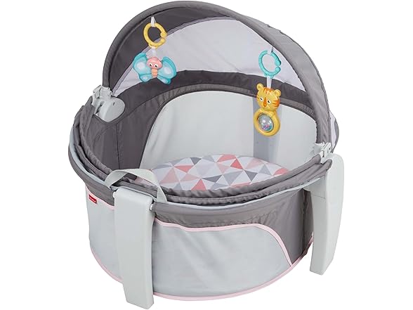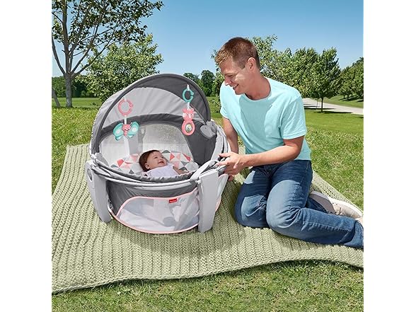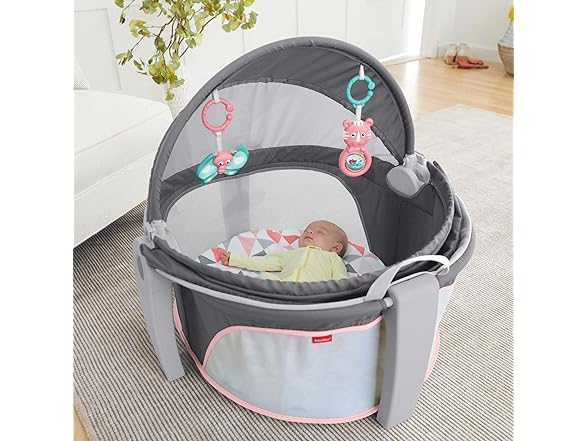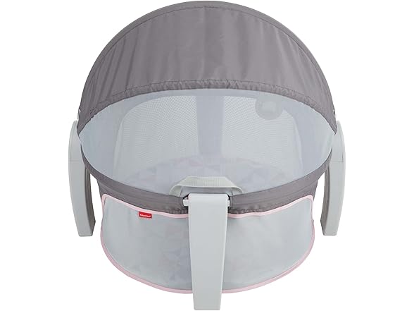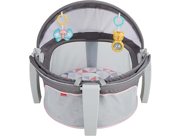 Fisher-Price Portable Bassinet On-The-Go Baby Dome, Travel Play Space with Developmental Newborn Toys & Canopy, Rosy Windmill