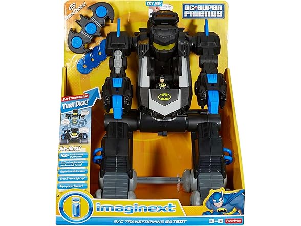 - Includes Transforming Bat Bot, full-function Remote Control, and four disks for launcher